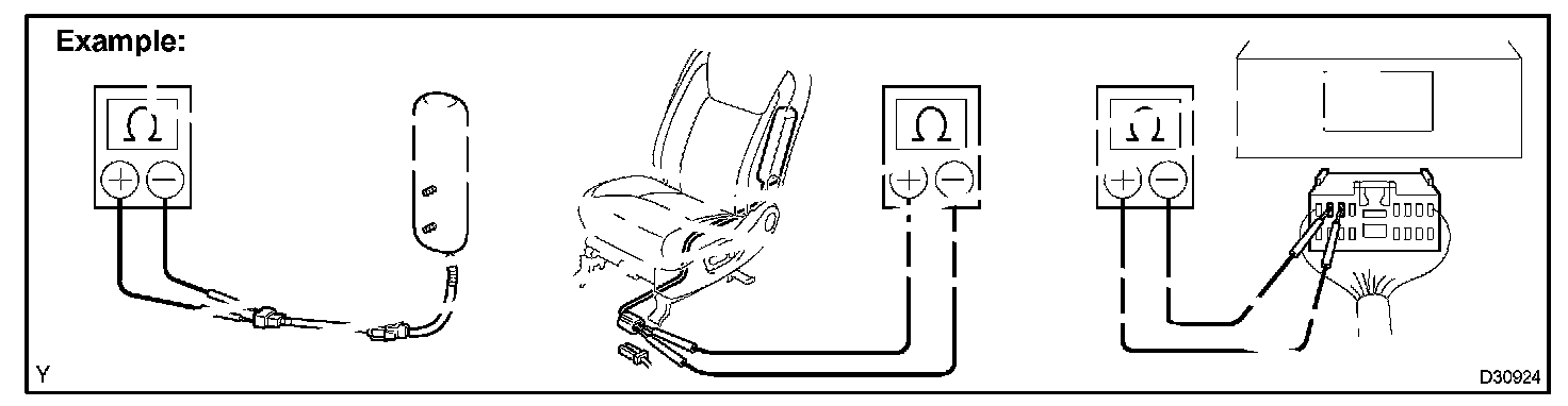 1. Never measure the resistance of the seat belt pretensioner (This may cause the seat belt pretensioner to activate, which is very dangerous).
