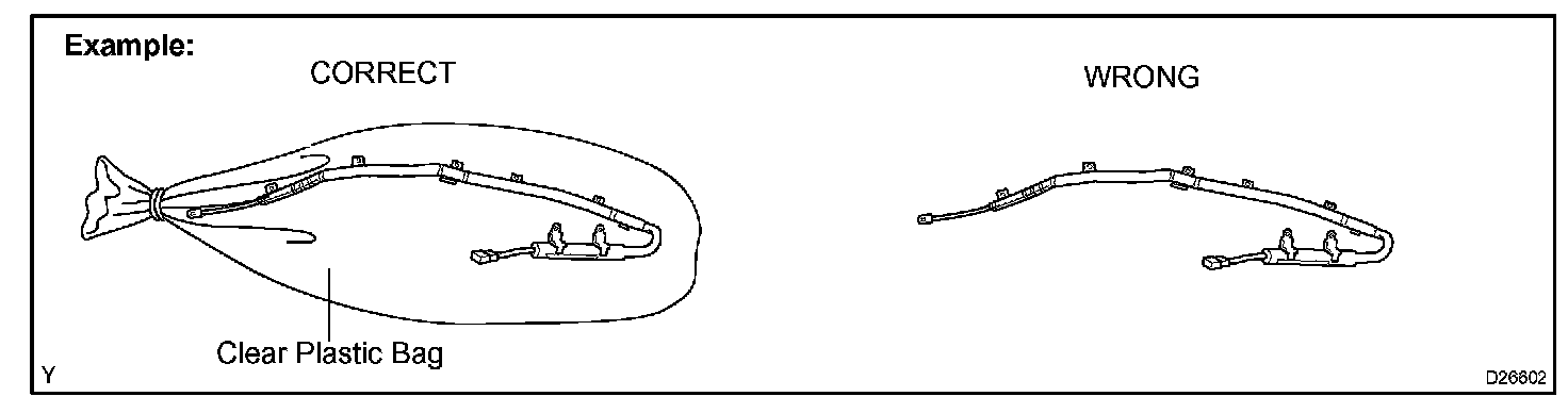 1. Always place the removed or new curtain shield airbag assy in a clear plastic bag, and keep it in a safe place.