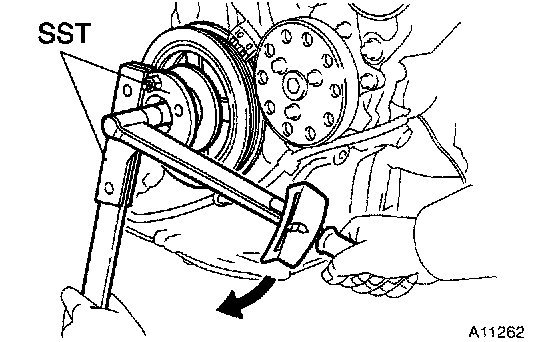 b. Using SST, install the pulley bolt.