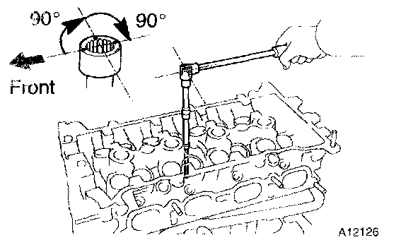 e. Retighten the cylinder head bolts by additional 90° and one more additional 90° as shown in the illustration.