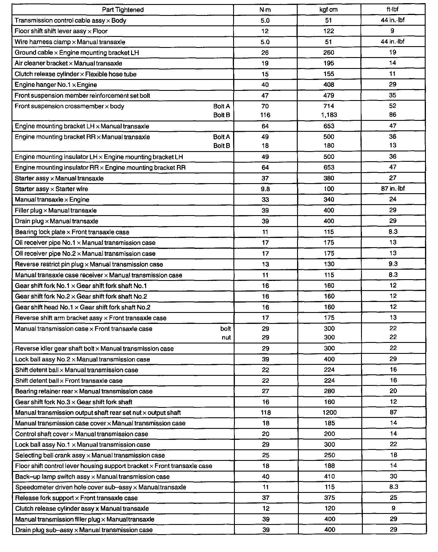Torque Specification