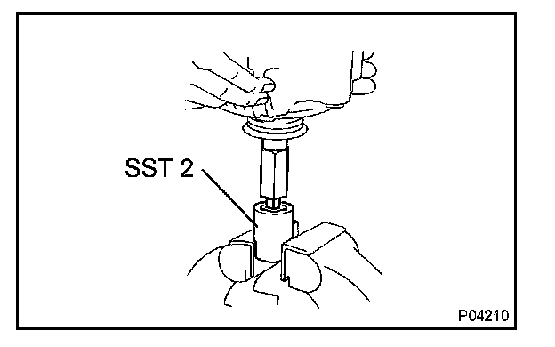 c. Insert SST 1-A and B into SST 2, and attach the pulley nut to SST 2.