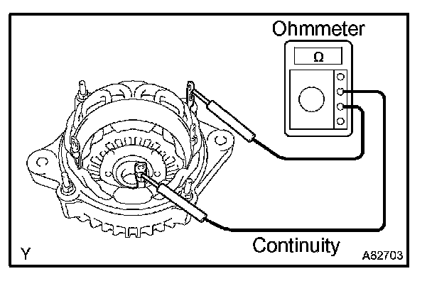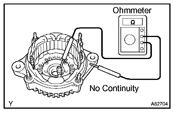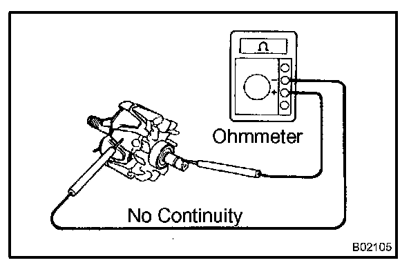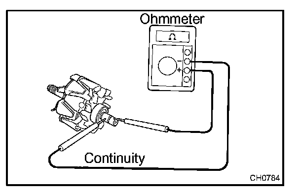 1. Using an ohmmeter, check that there is no continuity between the slip ring and rotor.