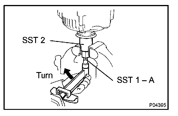 b. Hold SST 1-A with a torque wrench, and tighten SST 1-B clockwise to the specified torque.