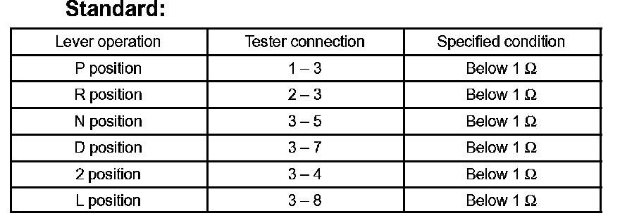 a. Inspect the park/neutral position switch assy continuity.