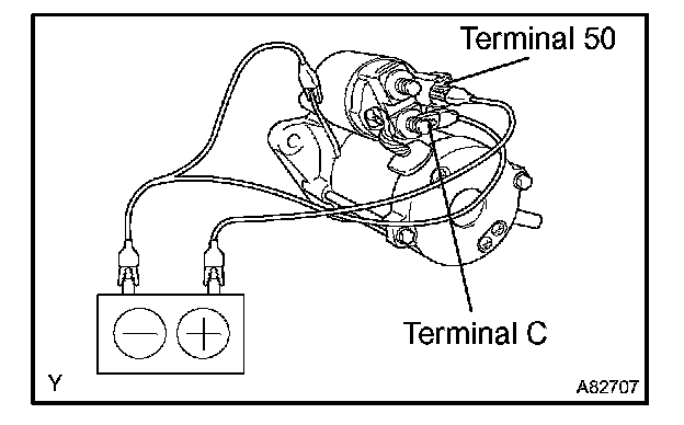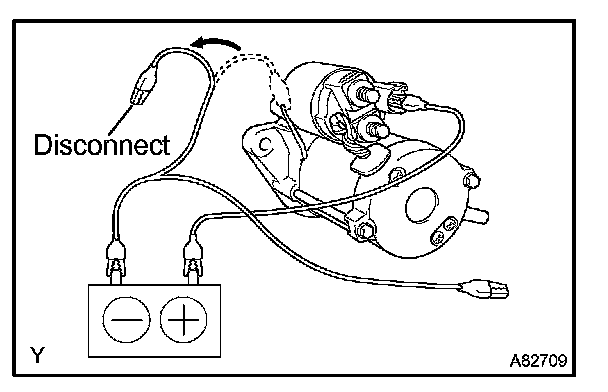1. Disconnect the negative (-) lead from the terminal C with the above condition (a) maintained. Check that the pinion gear remains extended.