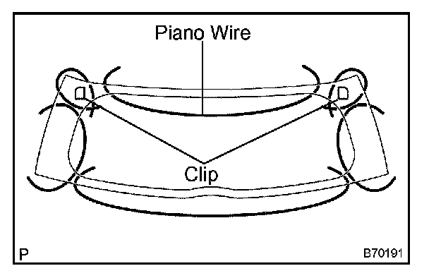 a. From the interior, insert piano wines between the vehicle body and glass, as shown in the illustration.
