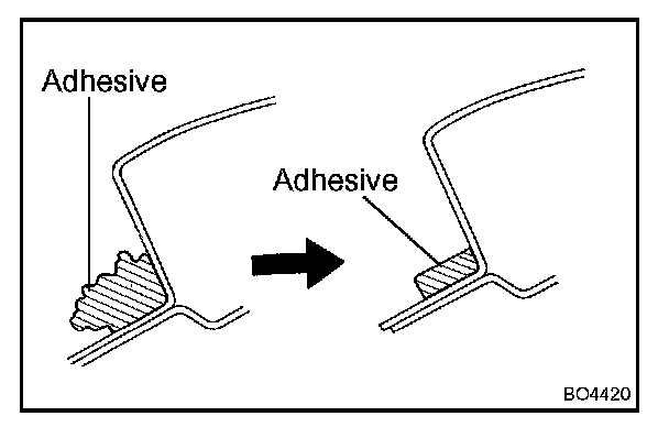 1. Using a knife, cut away any rough adhesive on the contact surface of the vehicle body to ensure the appropriate surface shape.
