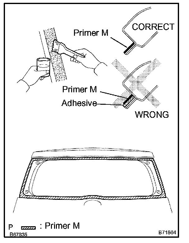 a. Using a brush or sponge, coat the edge of the glass and the contact surface with Primer G.