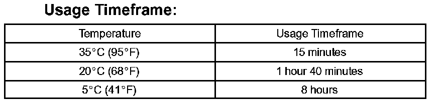 HINT: After cutting off the tip, use all adhesive within the time described in the table.