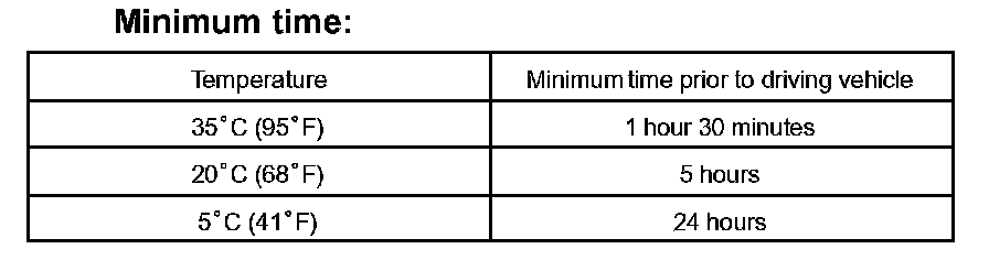 NOTE: Take care not to drive the vehicle for the time described in the table.