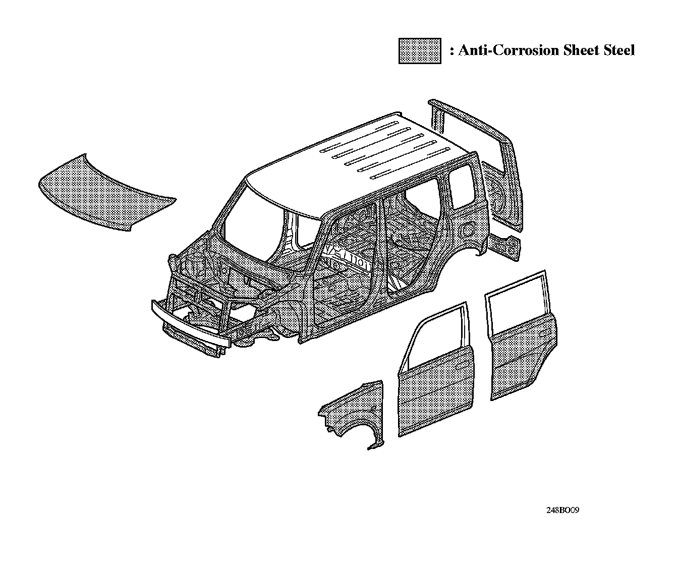 Anti-corrosion sheet steel is in all areas other than the roof and interior parts.