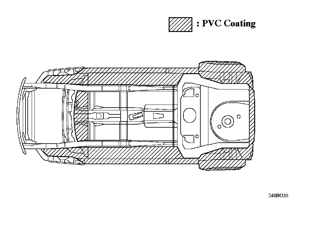 PVC (Polyvinyl Chloride) coating is applied to the under side of the body. A thick coating to improve rust resistant performance is applied to the rear wheelhouse, which are subject to damage by flying stones, etc.