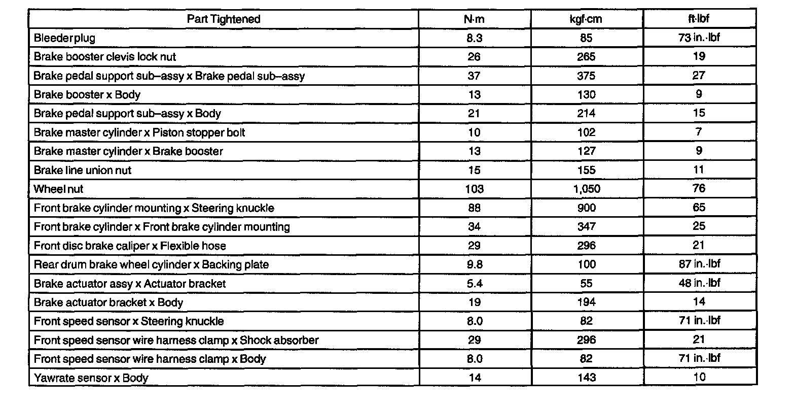 Torque Specification