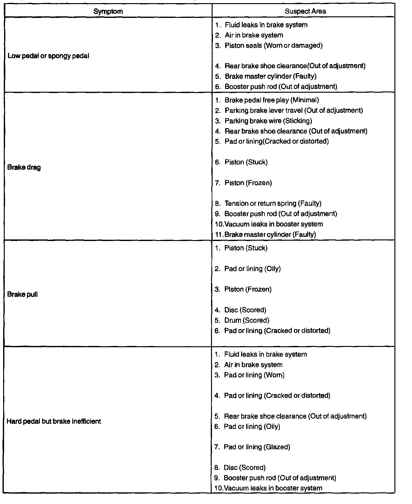 PROBLEM SYMPTOMS TABLEPart 1 Of 2: