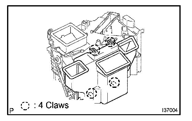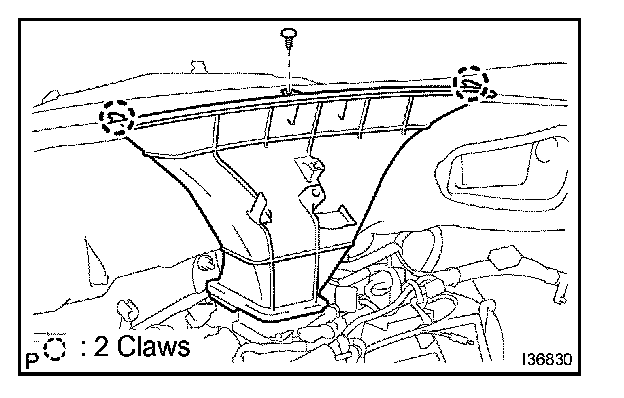 b. Disengage the 2 claws and remove the defroster nozzle assy.