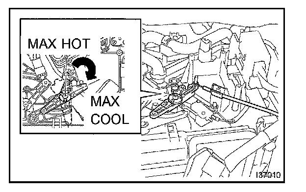b. Install the inner cable end to the control lever with the arm in the MAX. COOL position.