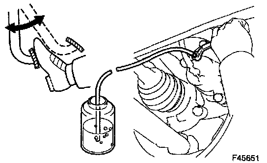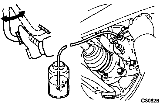 ^ During this procedure, the pedal seems heavy, but completely depress it so that the brake fluid comes out from the bleeder plug.