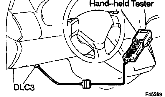 b. Connect the hand-held tester to the DLC3, then turn the ignition switch ON.
