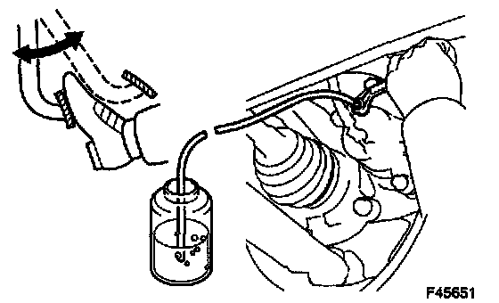 1. Connect the vinyl tube to the bleeder plug at the right front wheel or the right rear wheel and loosen the bleeder plug.