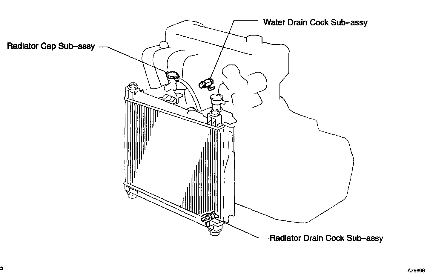 b. Loosen the radiator drain cock and drain engine coolant.