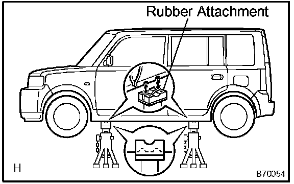 f. When jacking up only the front wheels or only the rear wheels, place wheel stoppers on both sides of the wheels touching the ground.