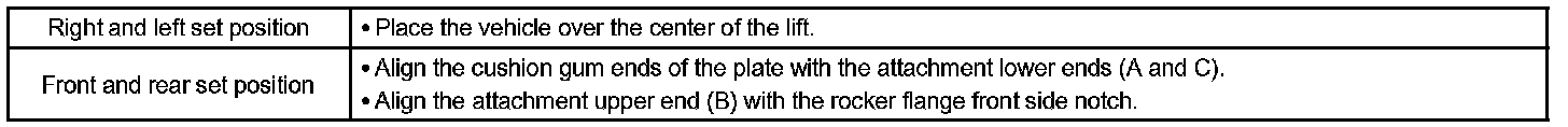 d. Set the vehicle on the cradle as level as possible. Then match the groove of the cradle to the rigid rack support location. Do not raise the vehicle too high because the vehicle may become unstable.