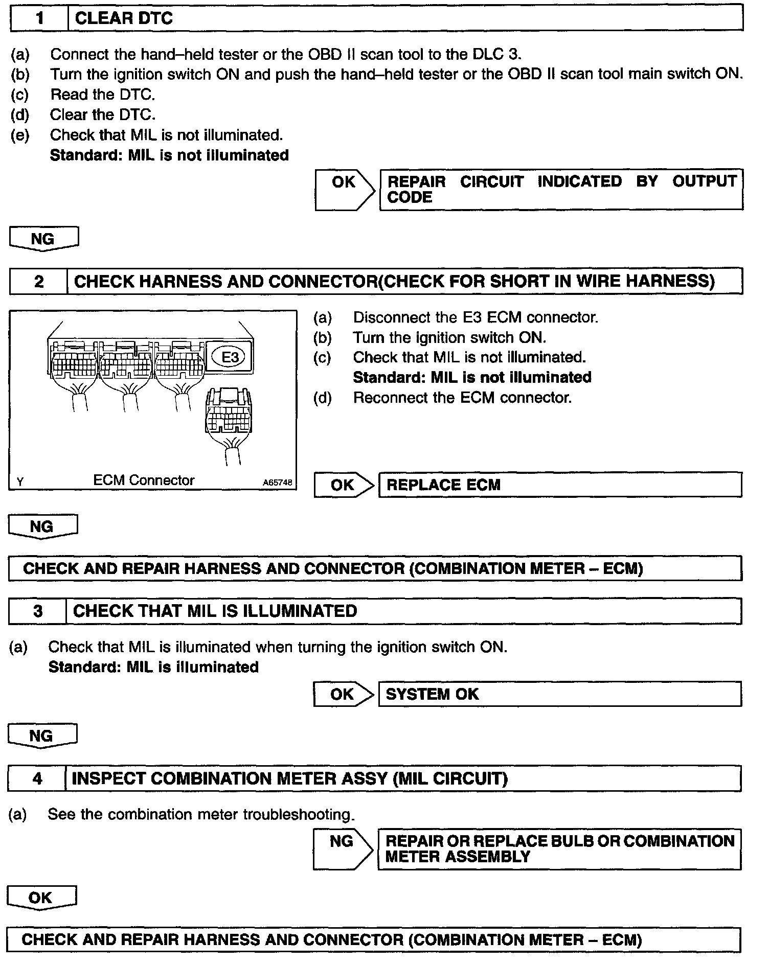 The ignition switch provides circuit power and the ECM provides the circuit ground that illuminates the MIL. MIL operation is checked visually: