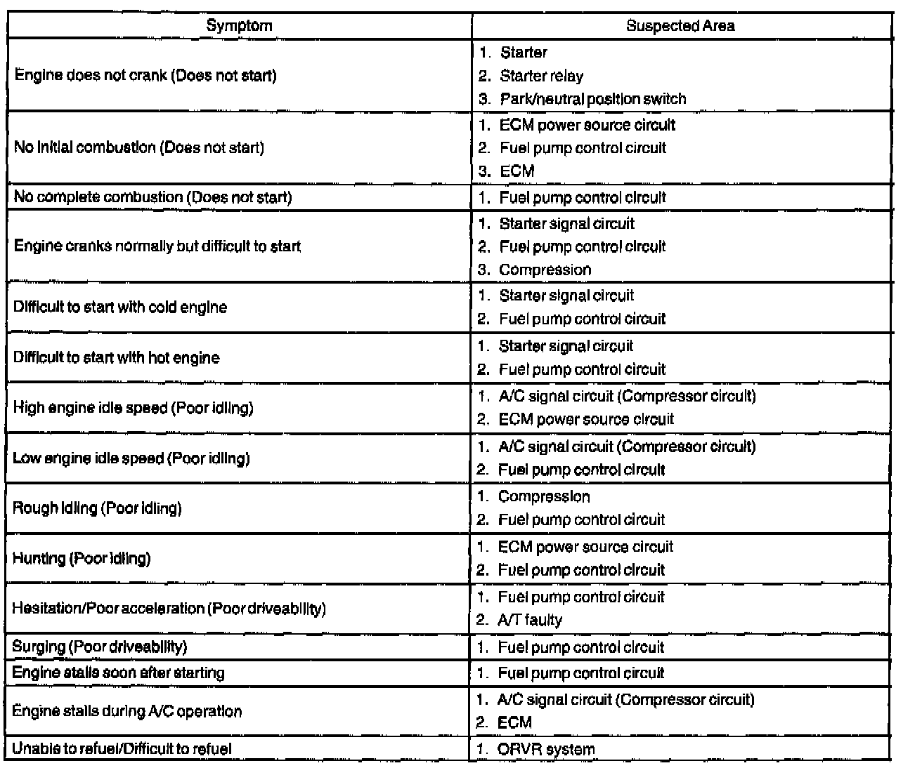 Problem Symptoms Table: