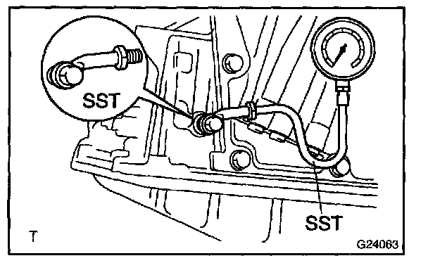 7. Measure the line pressure when the engine is idling.