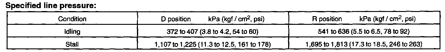 8. Depress the accelerator pedal all the way down. Quickly read the highest line pressure when engine speed reaches stall speed.