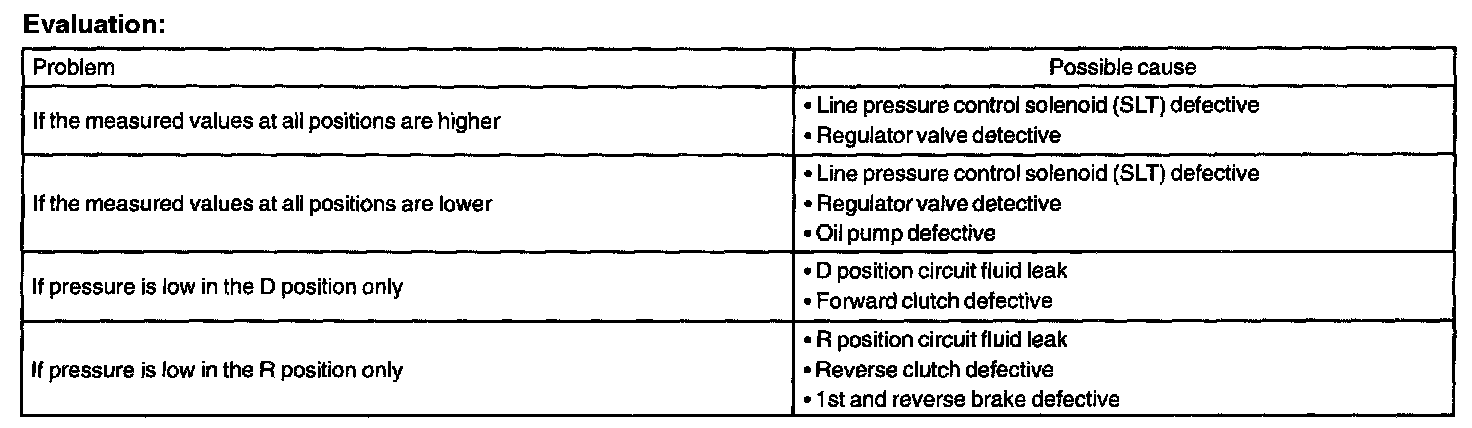 - Do the test at normal operation ATF temperature 50 to 80°C (122 to 176°F).