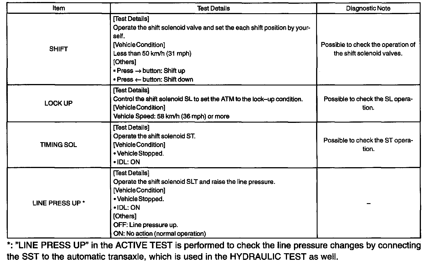 HINT: The pressure values in ACTIVE TEST and HYDRAULIC TEST are different from each other.