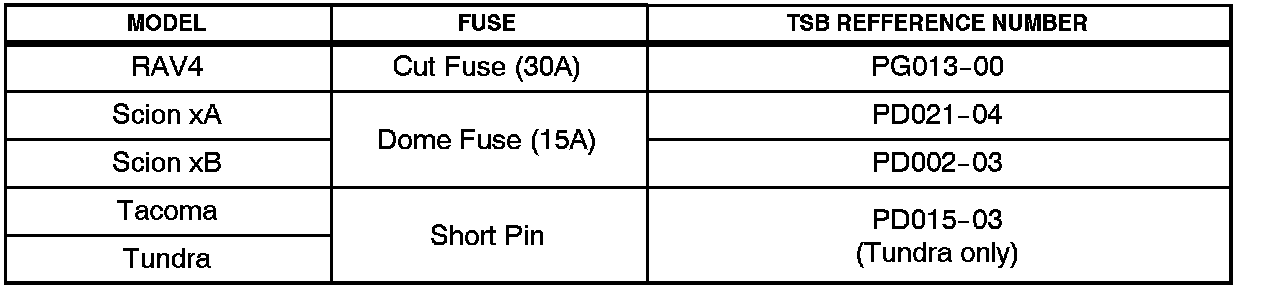 ^ 2004 model year RAV4, Scion xB, Tacoma and Tundra vehicles.