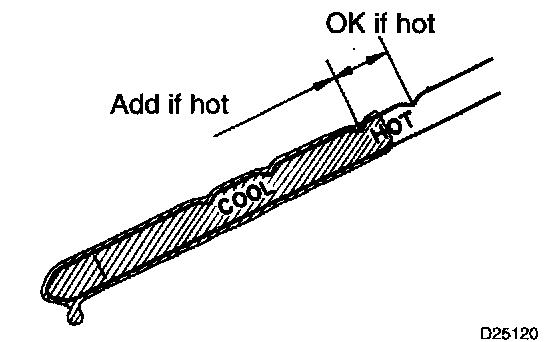 e. Pull it out and check that the fluid level is in the HOT position.