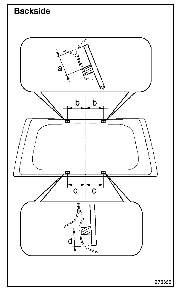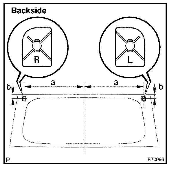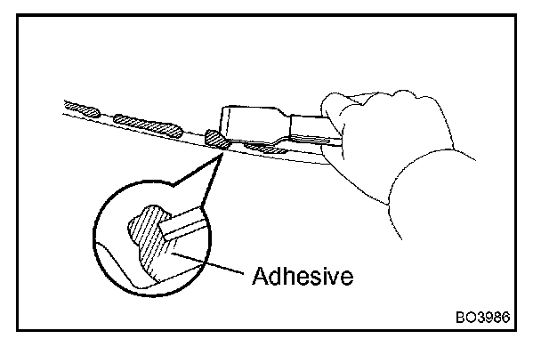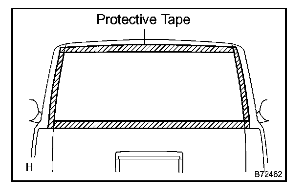 1. Hold the back window glass in place securely with tape or equivalent to the vehicle body until the adhesive has hardened.