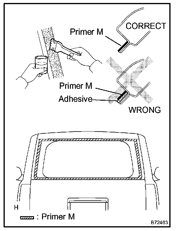 b. Using a brush, coat the exposed part of the vehicle body with Primer M.