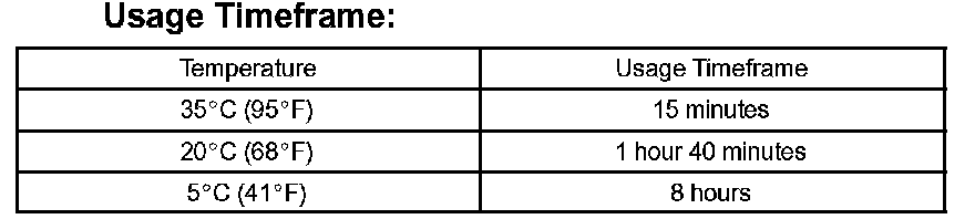 HINT: After cutting off the tip, use all adhesive within the time described in the table.