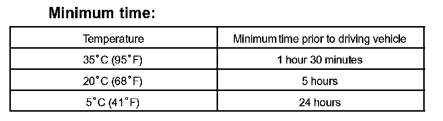 NOTE: Take care not to drive the vehicle for the time described in the table.