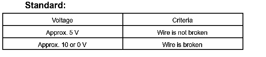HINT: If there is approximately 10 V, the wire may be faulty between the center of the wire and the wire end on the battery side. If there is no voltage, the wire may be faulty between the center of the wire and the wire end on the ground side.