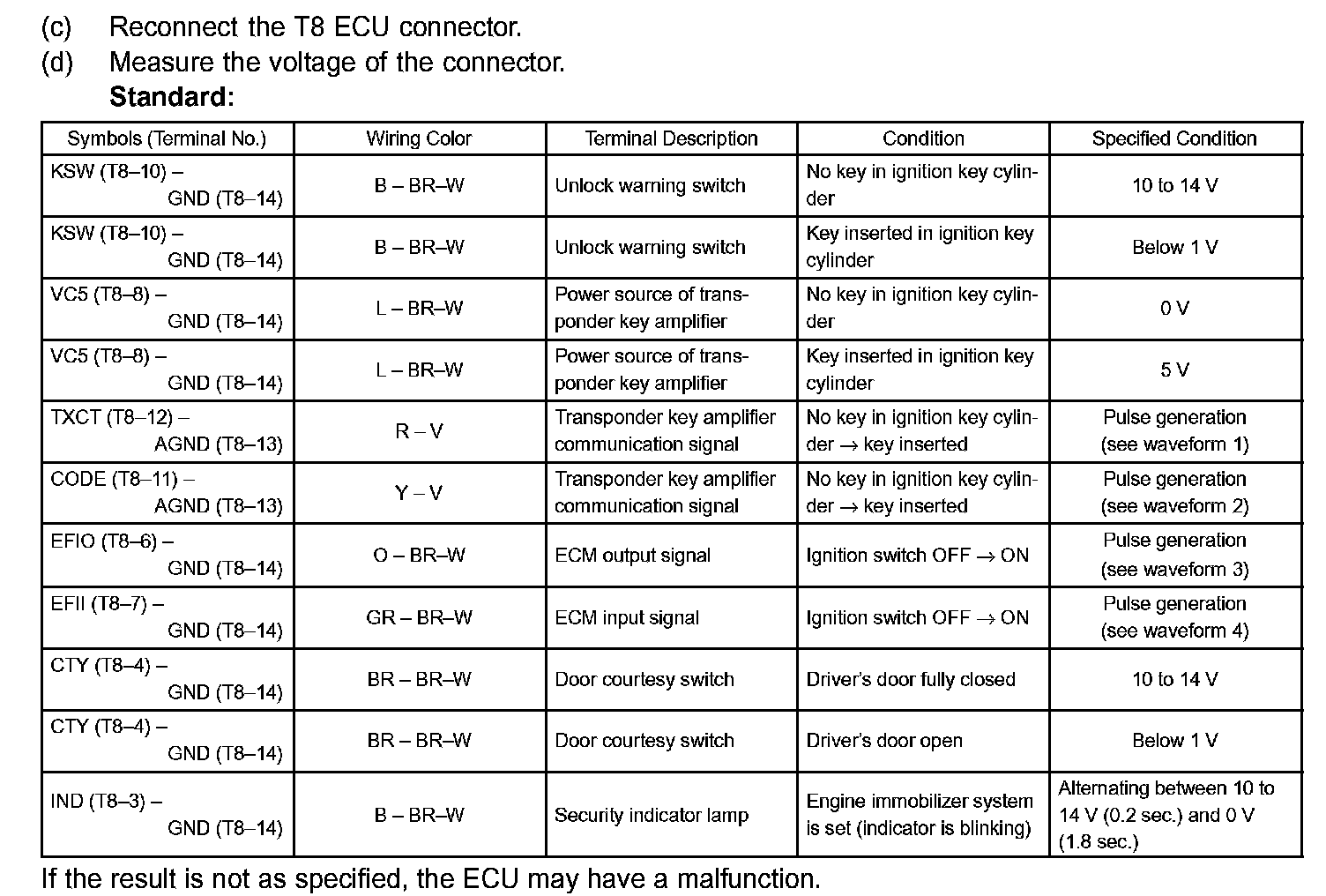 Terminals Of Control Module/Pinouts - Check Transponder Key ECU Assy Part 2:
