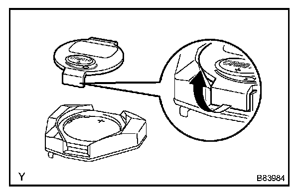 a. Install a new battery (lithium battery) with the positive (+) side up, as shown in the illustration.