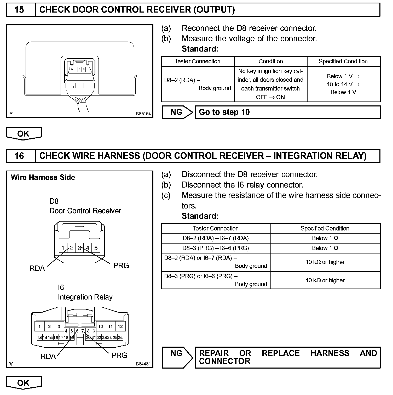 The door control receiver receives signals from the transmitter and sends these signals to the integration relay. The integration relay then controls all the doors by sending LOCK/UNLOCK signals to each door lock actuator.