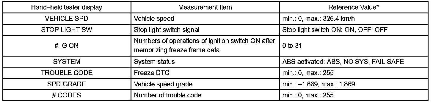 - Whenever a DTC is detected or the ABS operates, the skid control ECU stores the current vehicle (sensor) state as freeze frame data.