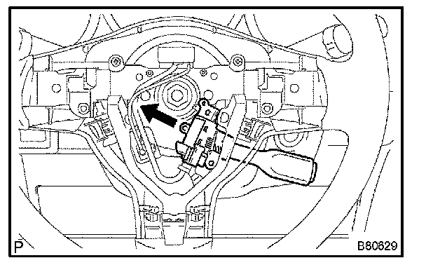 c. Pull out the cruise control main switch assembly in the direction shown by the arrow in the illustration.