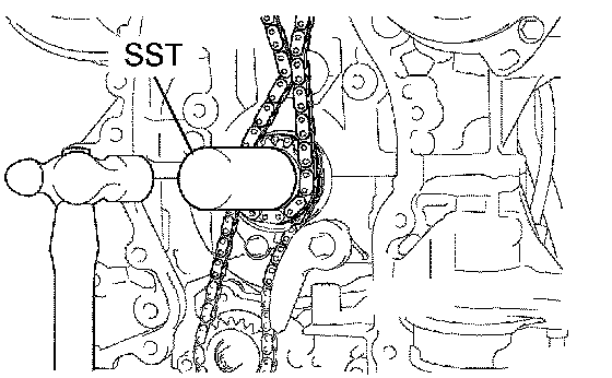 d. Insert the blade of SST between the crankcase, chain cover and oil pan, then cut off the applied sealer and remove the oil pan.