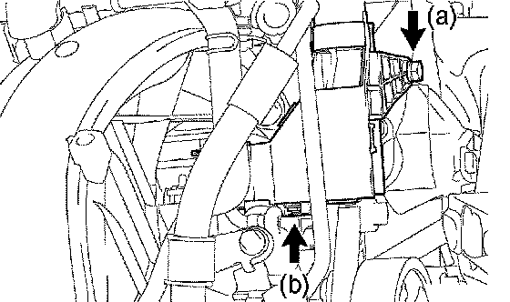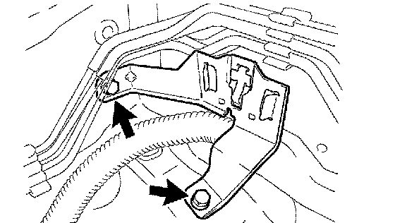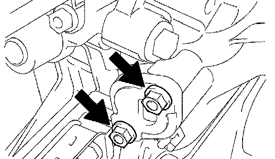 a. Lift the engine upward using the transmission jack, then remove the bolt and nut shown in the illustration.