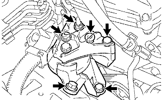 i. Remove the 4 bolts and 2 nuts, then remove the engine mounting insulator RH.