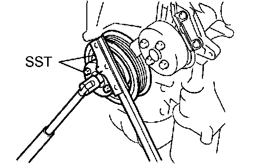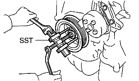 a. Using SST, fix the pulley and loosen the pulley bolt.