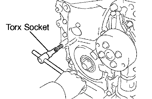 a. Using a Torx socket E10, remove the stud bolt for the V ribbed belt tensioner.